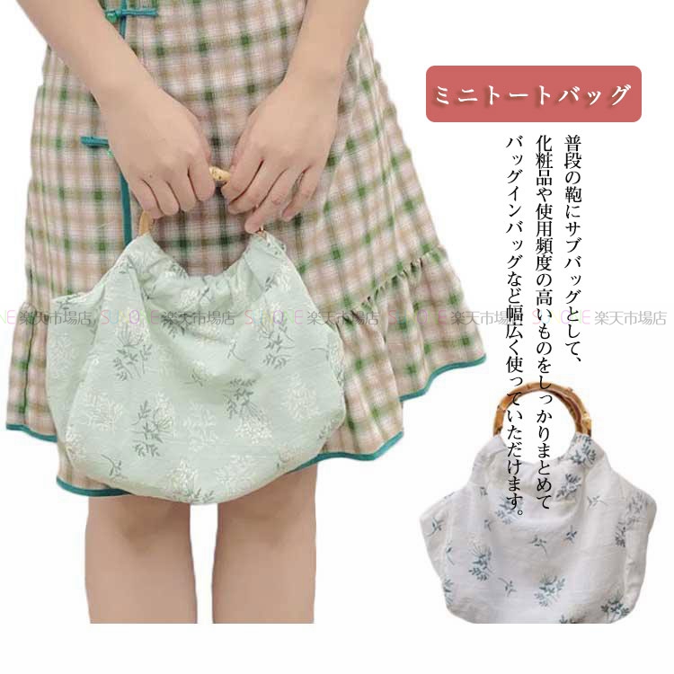 レディース 手提げバッグ トートバッグ バッグ お洒落 お出かけ 旅行 温泉 カジュアル 竹持ち手 花柄 和柄 軽量 浴衣