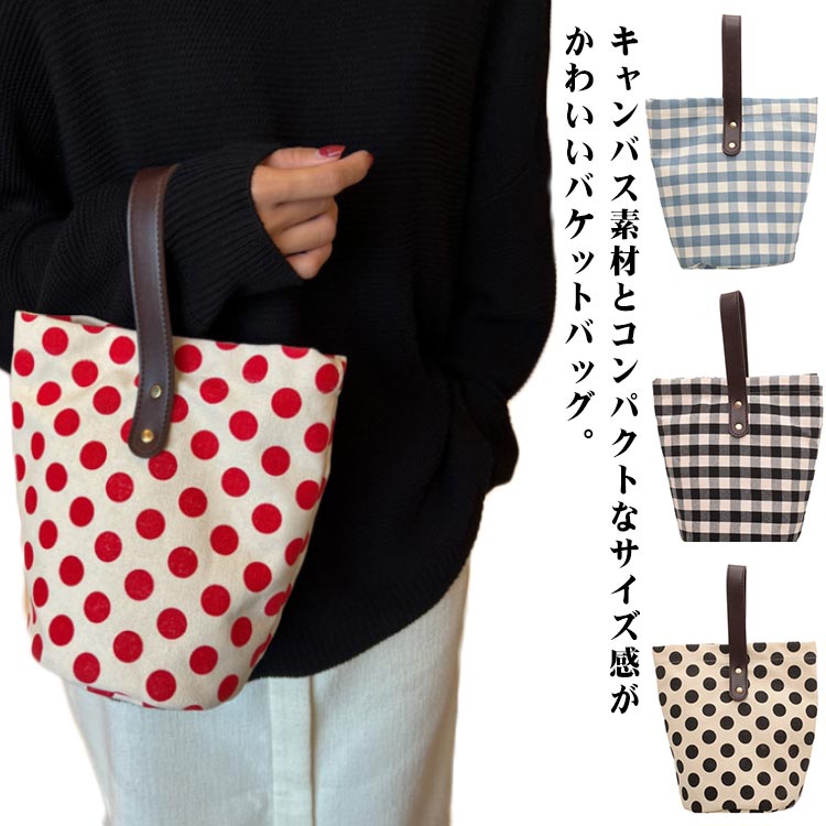 キャンバス キャンパス キャンパス ミニトートバッグ お散歩バッグ レディース 小さめ レディース ドット柄 チェック柄 ハンドバッグ