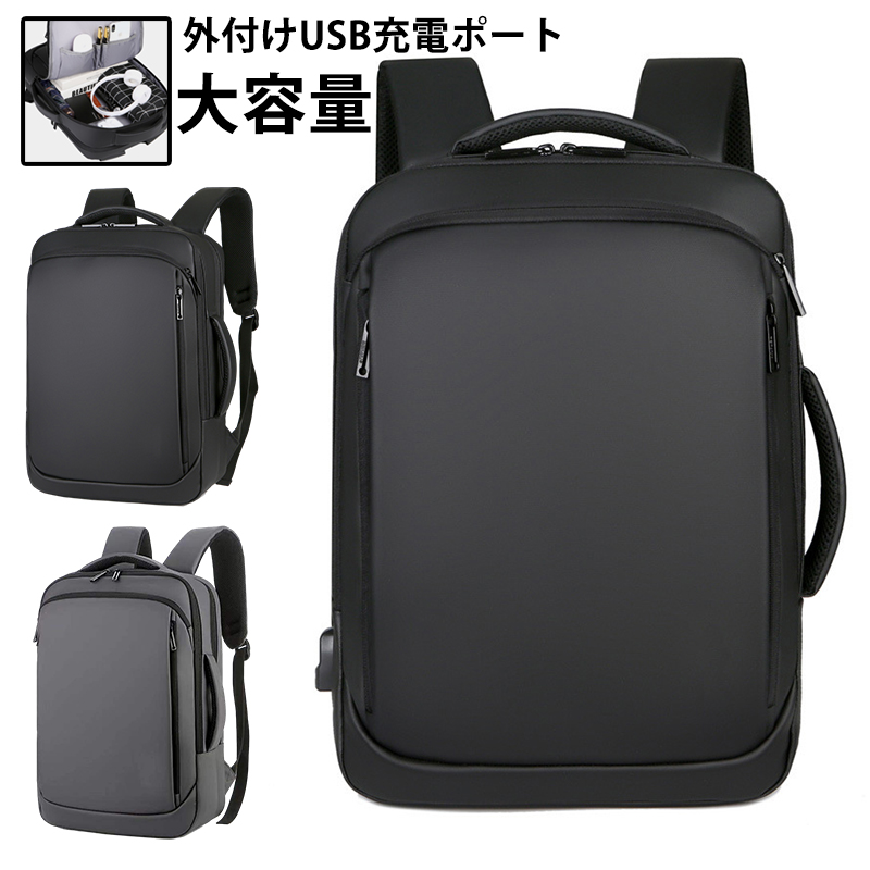 リュック メンズ リュックサック バックパック 大容量 ビジネスリュック 防水 盗難防止 提げてもいい USB充電 軽量 撥水加工 通勤 出張 旅行