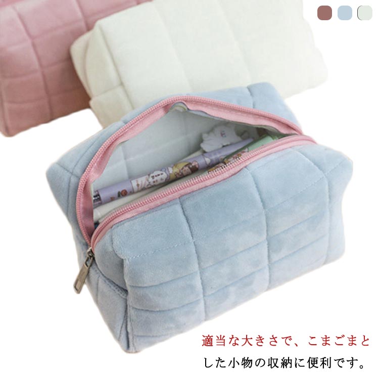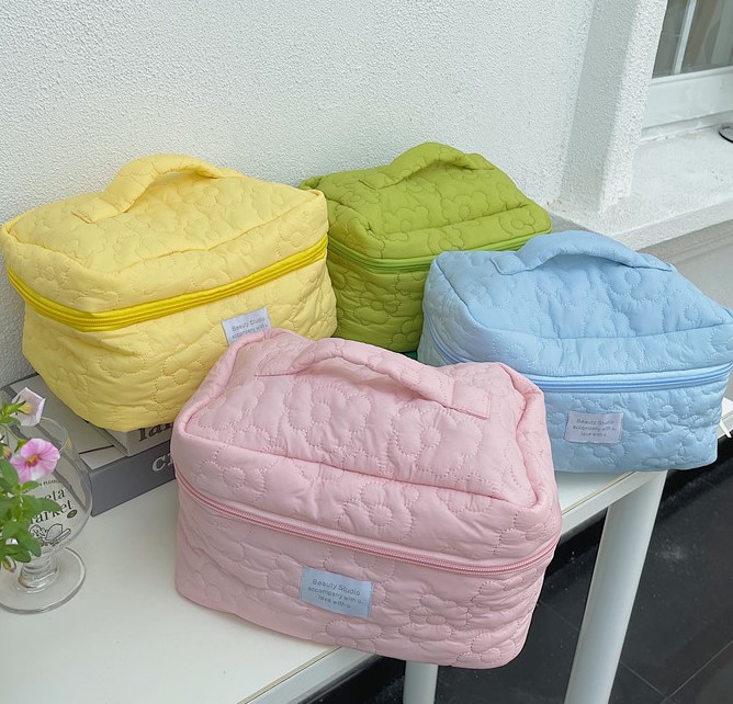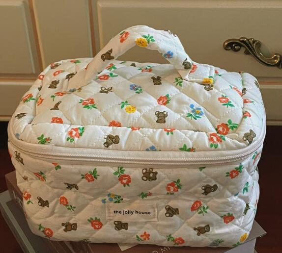 キルティングポーチ化粧ポーチトラベルポーチ大容量洗面用具大きいおしゃれかわいい韓国旅行小物入れ収納化粧品メイクポーチ持ち手四角メイクボックスバニティー大きめ花柄くまリボン柔らかい綿