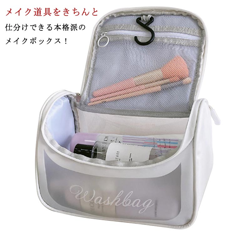 コスメポーチ 大容量 レディース 化粧ポーチ 化粧バッグ 手提げ付き 人気 おしゃれ 旅行 整理 ネットポケット 軽い バック ホワイト ピンク プレゼント