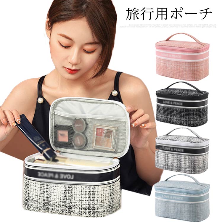 化粧バッグ ファスナー ネットポケット 手提げ付き 人気 おしゃれ 軽い バック化粧ポーチ 機能的 仕切りあり 旅行 整理 便利グッズ 大きめ 使いやすい