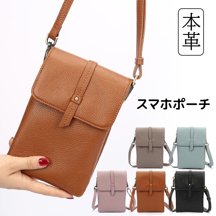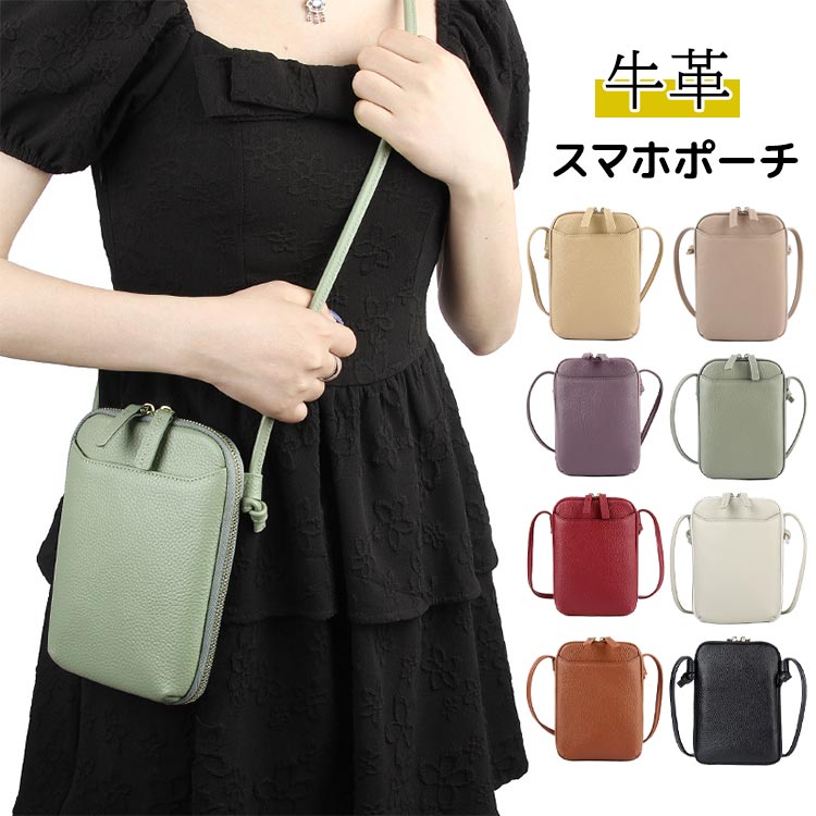 スマホポーチ スマホショルダー 本革 牛革 スマホポシェット レディース 財布 携帯 斜めがけ カード入れ 小銭入れ ミニショルダーバッグ 小物収納 軽量 黒 ブラウン ベージュ カーキー 無地 シン