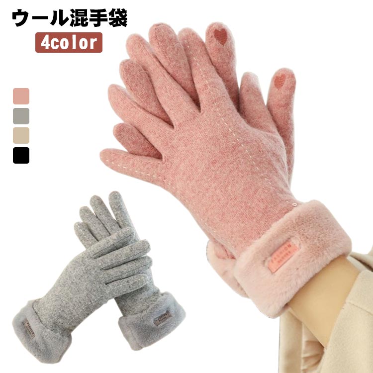 防寒 あったか 女性用 かわいい スマホ手袋 レディースファッション 暖か WOOL スマートフォン対応