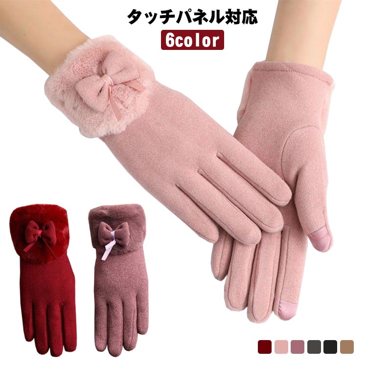ムートン 可愛い スマートフォン対応 レディース手袋 ムートン 裏ボア ラビットファー 結婚式 リボン 防風 プレゼント りぼん
