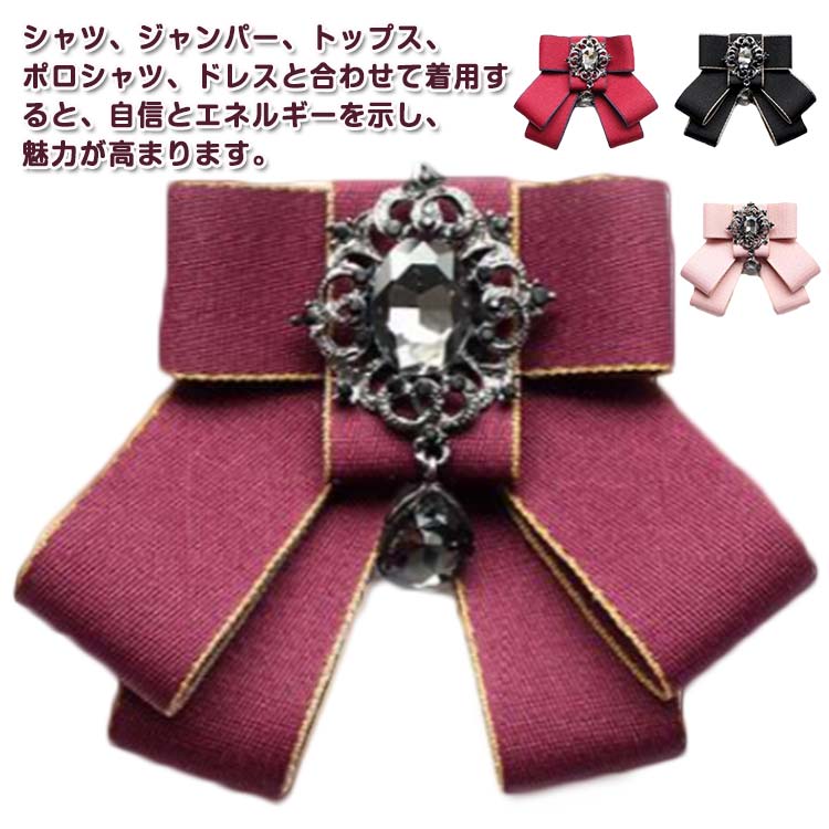 華やかなビジュー付きリボンタイ ブローチ コサージュ 男女兼用 結婚式 パーティー 発表会 入学式 演奏会 普段使い 女性用 通勤 通学 パーティー 宴会