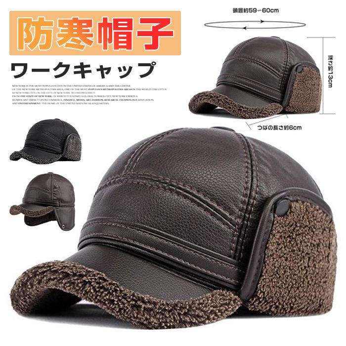 防寒帽子 耳あて付 ワークキャップ ハット キャップ メンズ PU帽 ゴルフ 秋冬 あったかバッグ 小物 ブランド雑貨 帽子 メンズ帽子 キャップ