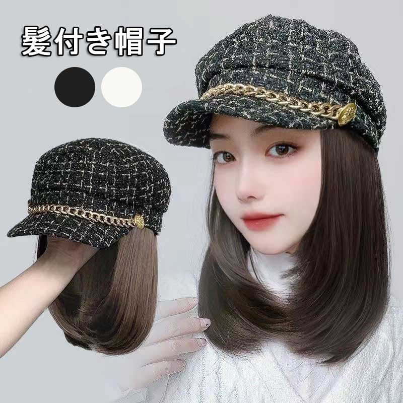 髪付き帽子 ウィッグ 春 夏 秋 冬 自然 レディース ウィッグ 帽子付きウィッグ ウィッグ カール かつら 帽子一体型 ウィッグ付きキャップ 小顔効果 ウェーブ 暖かい 髪付き帽子 簡単 自然 便利