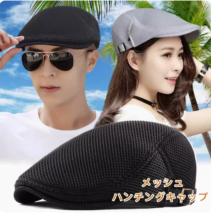 ハンチング 帽子 キャスケット キャップ 吸湿速乾 通気性 メッシュ 春夏 メンズレディース サイズ調整式 日よけ つば 紫外線対策