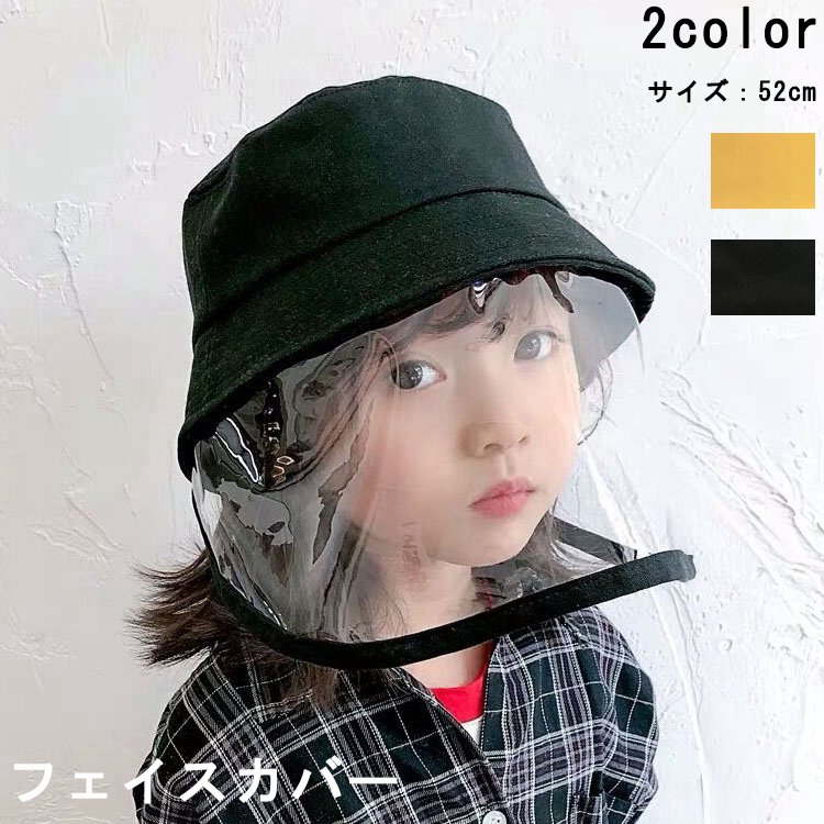 子供用 漁師帽 飛沫防止帽子 ウイルス対策 キャップ 飛沫防止マスク 2 無地 花粉症対策 防塵 男の子 カット フェイスカバー つば広ハット透明タイプ 女の子