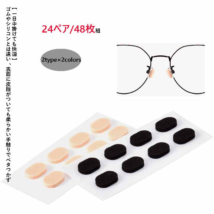 メガネ 鼻パッド 支え 半透明 シリコン シンプル 滑り止め めがね用 跡防止 2colors 24個セット