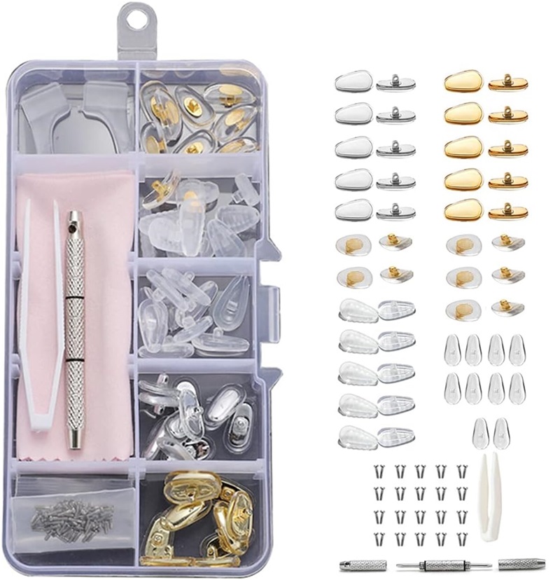 メガネ鼻パッド 眼鏡 鼻パッド メガネ シリコン 柔らかい 25ペア 5種類 ノーズパッド ずれ落ち防止 メガネ用 鼻あて 修理キット エアクッション ハード 金属 交換セット