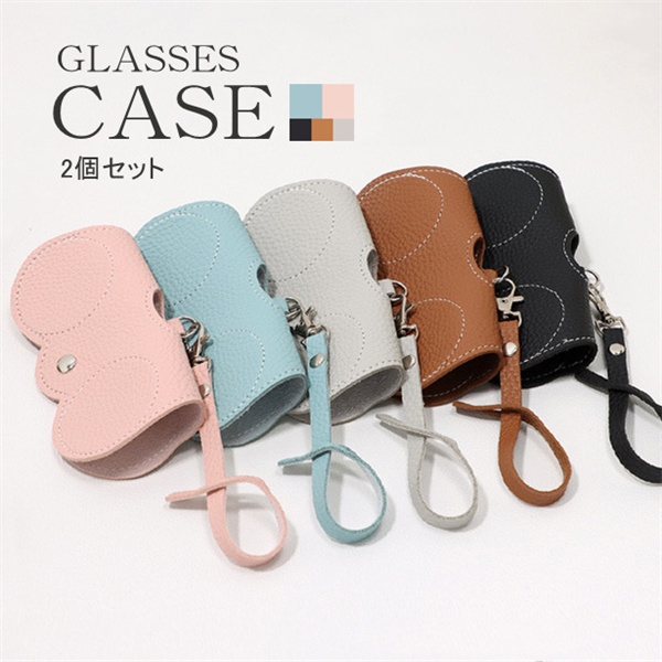 メガネケース2個セット ソフト レザー ストラップ付き シンプル 軽量 コンパクト サングラス 眼鏡ケース めがねケース 老眼鏡ケース