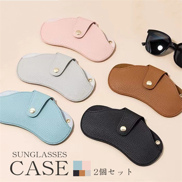 サングラスケース2個セット ソフト レザー 裏地付き ストラップ付き シンプル 軽量 コンパクト サングラス 眼鏡ケース めがねケース
