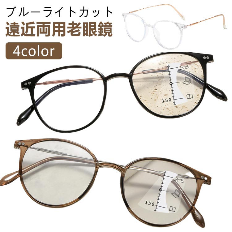 老眼鏡 遠近両用 メガネ ブルーライトカット機能搭載 老眼鏡 ギフト 男性 女性 おしゃれ シニアグラス +1.0 +1.5 +2.0 +2.5 +3.0 +3.5 +4.0