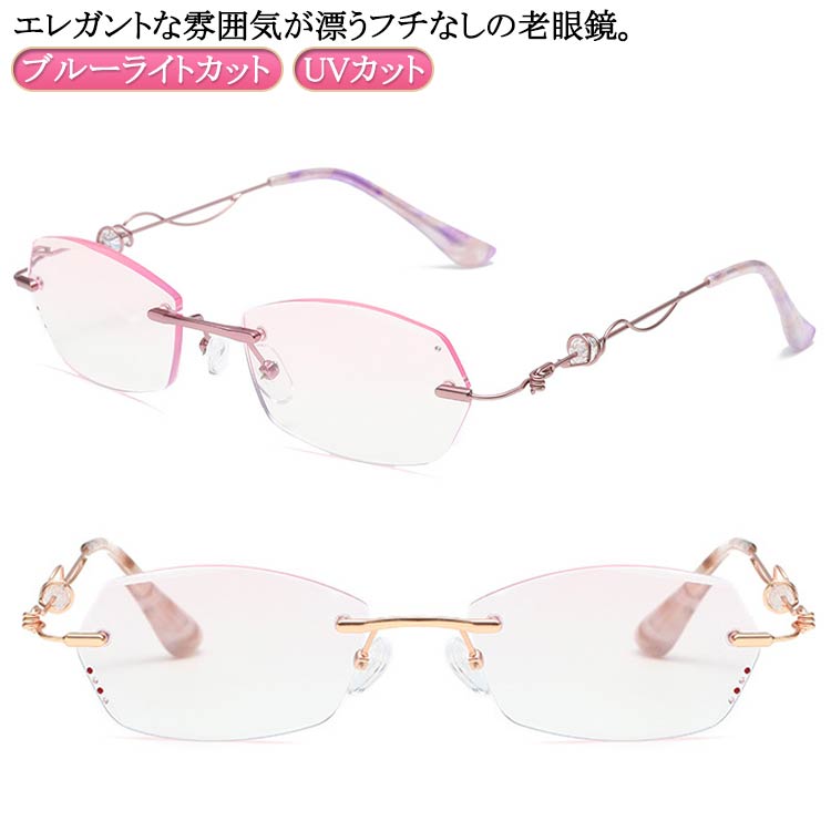 ブルーライトカット おしゃれ フチなし リーディンググラス シニアグラス ツーポイント UVカット リムレス 女性用老眼鏡 +1.0 +1.5 +2.0 +2.5 +3.0 +4.0