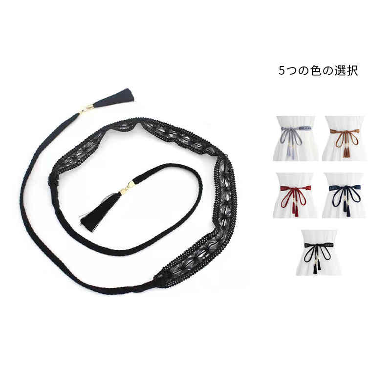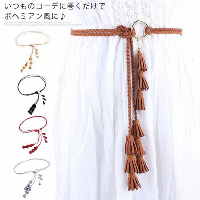 巻くだけでおしゃれ ロープベルト 紐ベルト 編みベルト フリンジ タッセル 女性用 ベルト きれいめ 巻き方 細い リボン