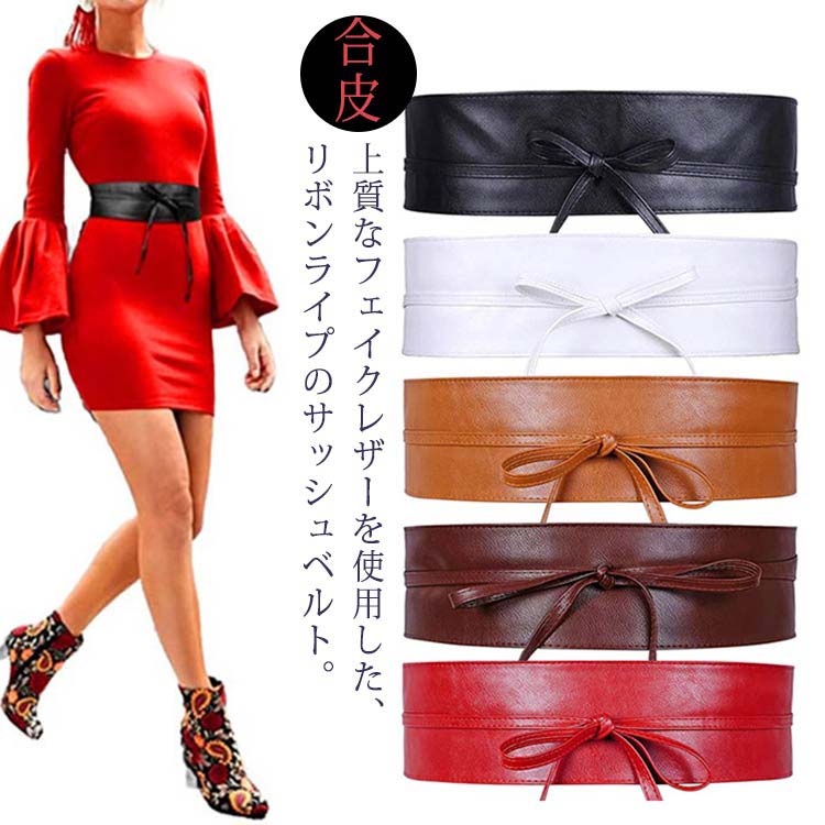 ゴム ベルト レディー おしゃれ キレイ サッシュベルト ハイウエスト 太 ベルト ウエストマーク リボンベルト