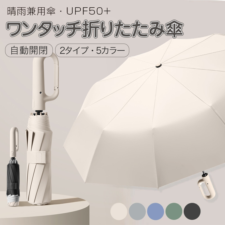 傘 自動開閉 逆さ傘 晴雨兼用カラビナハンドル 折り畳み傘 軽い カット50 紫外線遮断 メンズ レディース 軽量 大きめ ワンタッチ