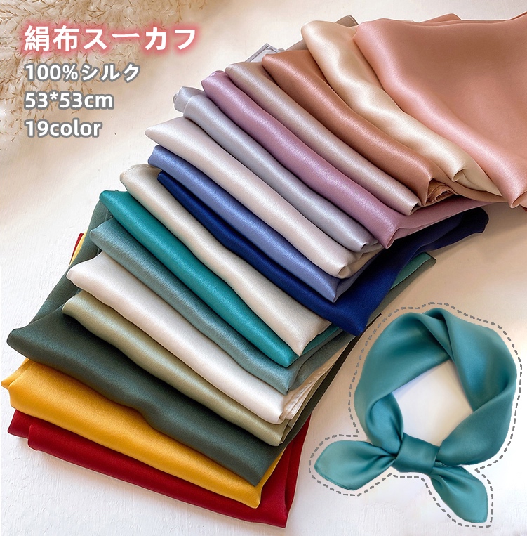 上品 スカーフ シルク100% 絹布 シンブル 無地 53*53 正方形 春夏秋 ミニスカーフ アクセサリー 高級感 女子力 大人気 おしゃれ 小さめ シルクスカーフ 首元 バッグスカーフ コンパ