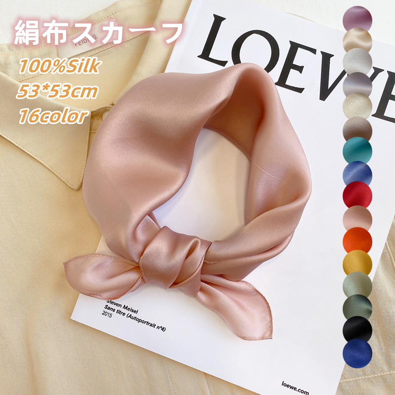 上品 スカーフ シルク100% 絹布 シンブル 無地 53*53cm 正方形 春夏秋 ミニスカーフ アクセサリー 高級感 女子力 大人気 おしゃれ 小さめ シルクスカーフ 首元 バッグスカーフ コンパ