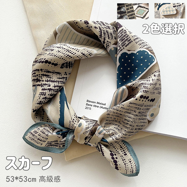上品 スカーフ シルク ミニスカーフ 高級プリント アクセサリー 高級感 女子力 大人気 おしゃれ 正方形 53*53cm 春夏秋 小さめ 首元 バッグスカーフ コンパクト プレゼント 春夏秋 ギフト