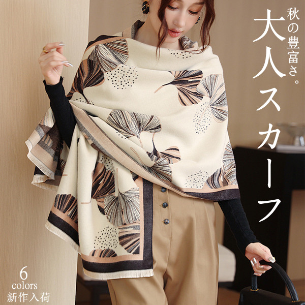 主張しすぎない銀杏柄はどんな着こなしにも合わせやすく スカーフ シルクタッチ スカーフ 大判 プチ ストール 絹 シフォン ベルト バッグ リボン ペイズリー チェック柄
