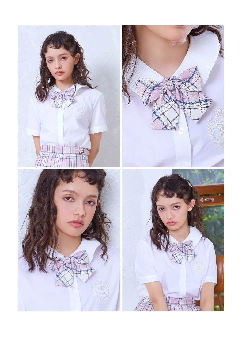 制服 リボン フリル かわいい 大人可愛い きれいめ シンプル カジュアル 上品 おしゃれ お洒落 こなれ感 ラフ ラブリー キュート ガーリー 主役級 存在感 柄 チェック柄 格子柄 春 夏