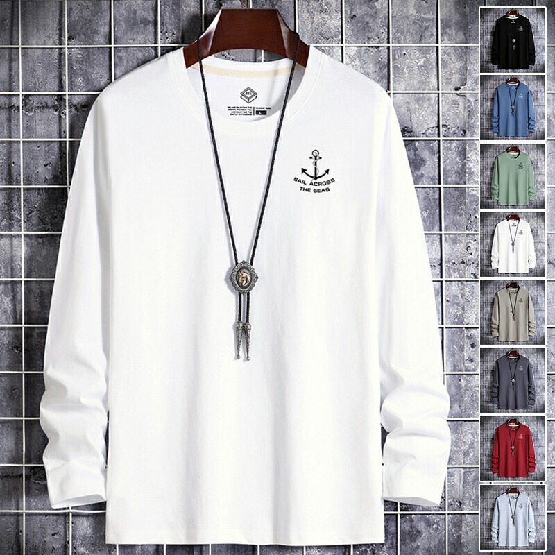 2サイズ上をお勧め シャツ メンズ ロングシャツ ロン 長袖 ネック クルーネックメンズファッション トップス シャツ カットソー