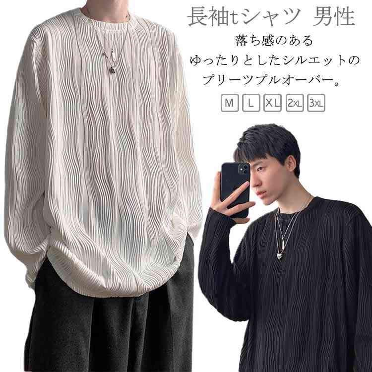 tシャツ ユニセックス ラウンドネック 長袖tシャツ プリーツ 男性 メンズメンズファッション トップス Tシャツ カットソー