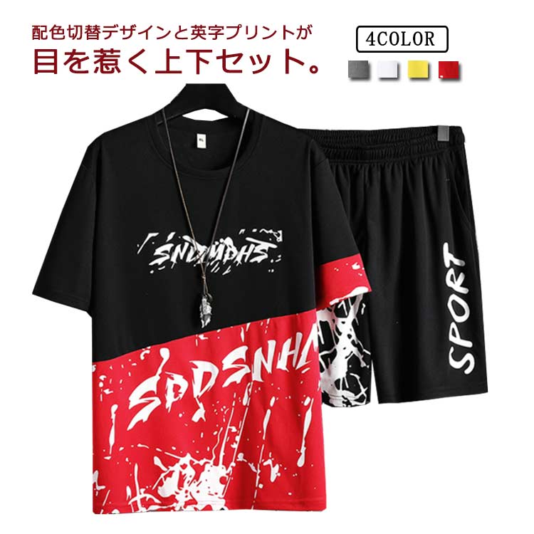 ジャージ スウェット 上下 セット 半袖 メンズ ルームウェア カジュアルセットアップ 配色メンズファッション トップス シャツ カットソー