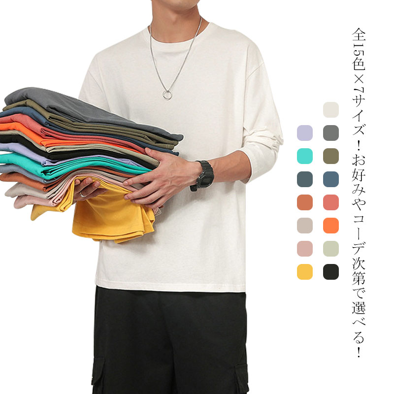 Tシャツ メンズ トップス 大きいサイズ カラフル 長袖 ロングtシャツ トレーナー スウェット 長袖tシャツ 白ティーシャツ カラーtシャツ 無地 厚手 秋 ロンt