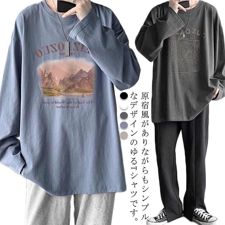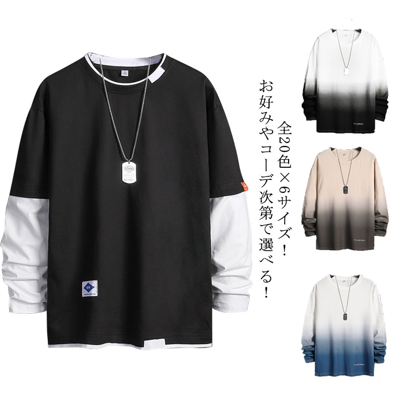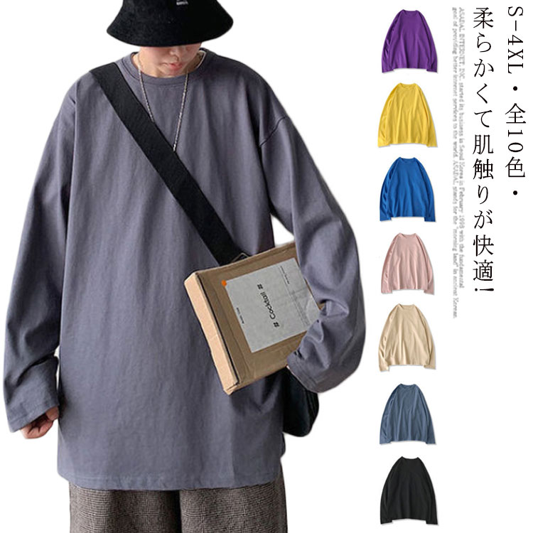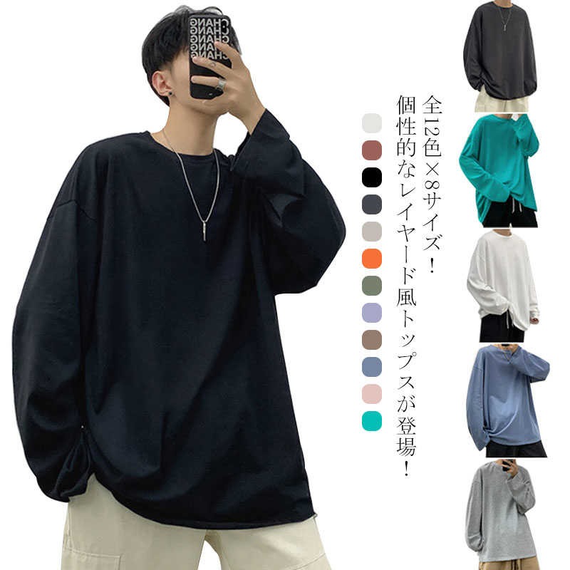 Tシャツ メンズ トップス クルーネック 体型カバー 大きいサイズ ゆったり ビングシルエット 原宿風 カジュアル インナーシャツ 長袖