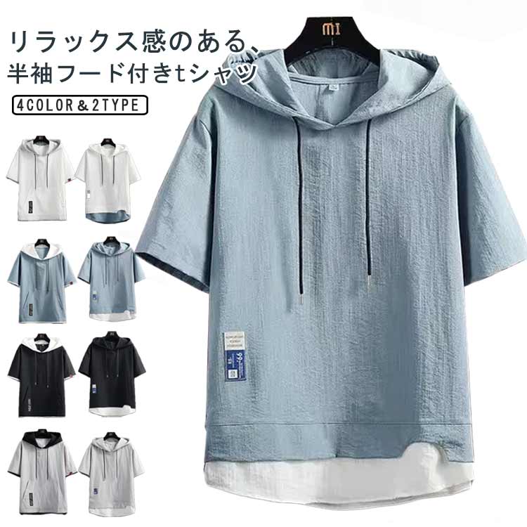 フード付きtシャツ 半袖 M~3XL ゆったり 体型カバー フード付きtシャツメンズファッション トップス Tシャツ カットソー