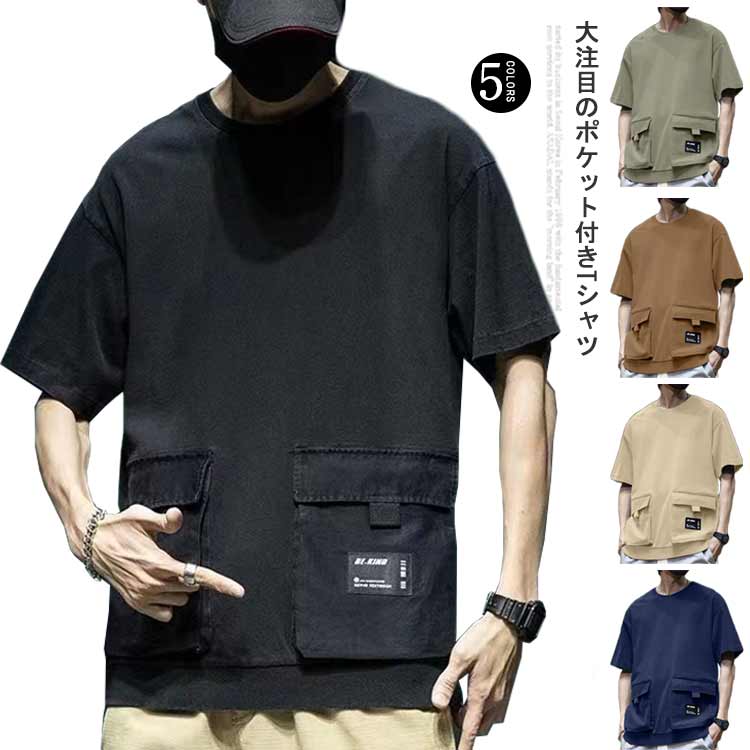 M~6XL カジュアル 半袖 ゆったり 体型カバー ポケット付きTシャツメンズファッション トップス Tシャツ カットソー