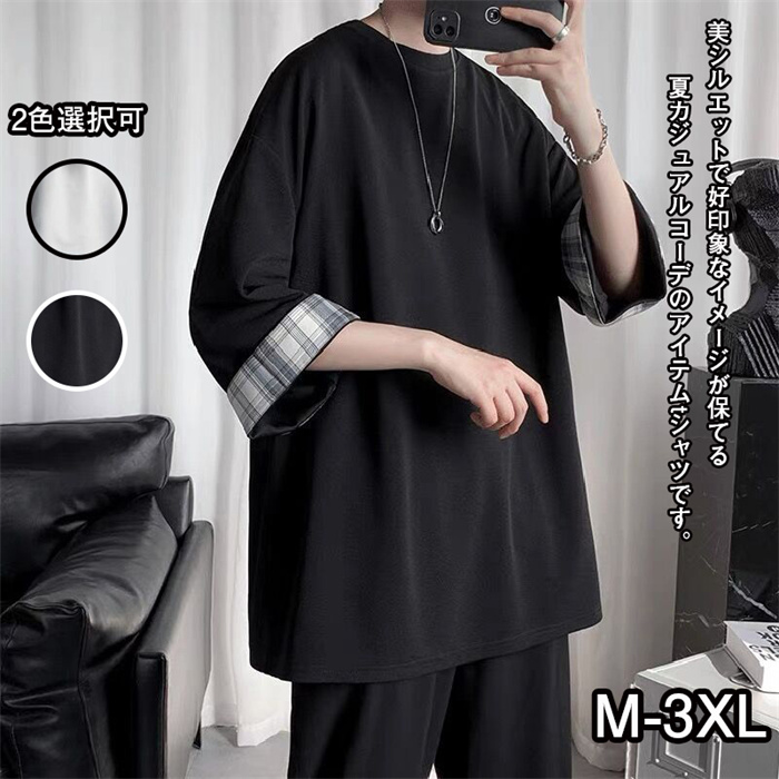 tシャツ メンズ 夏服 半袖 五分袖 おおきい サイズ 涼しい ゆったり かっこいい ビッグシルエット なつふく ストリート シンプル オシャレ 人気 無地 カジュアル トップス M-3XL