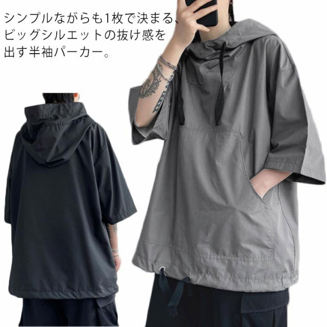シャツ メンズ 半袖 春 パーカー プルオーバー ストリート 夏 オーバーサイズ 体型カバー フード付き