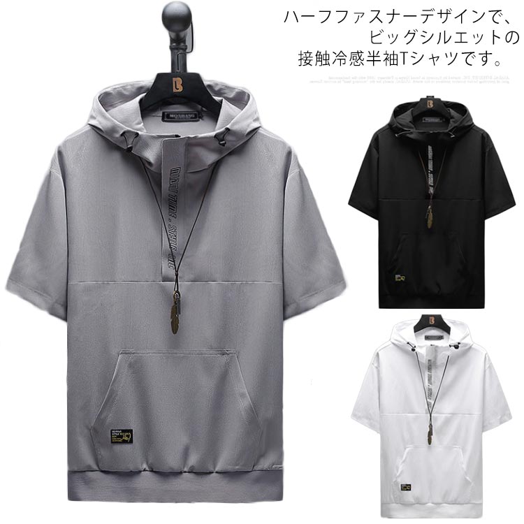大きいサイズ 接触冷感 メンズ 半袖 Tシャツ パーカー トップス 薄手 Tシャツ 夏メンズファッション トップス Tシャツ カットソー