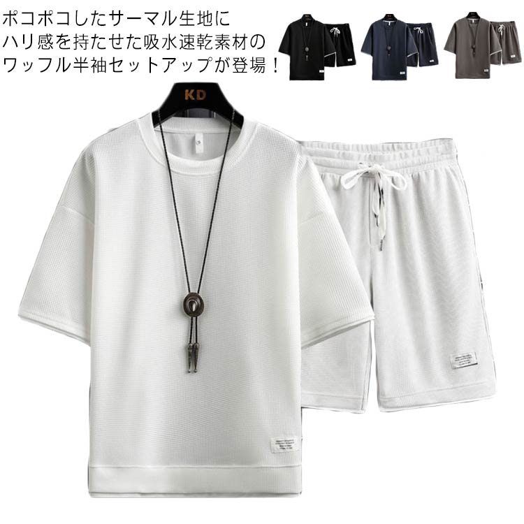 ショートパンツ 半袖シャツ ジャージ セットアップ カジュアル ワッフル 大きいサイズ ハーフパンツ メンズ