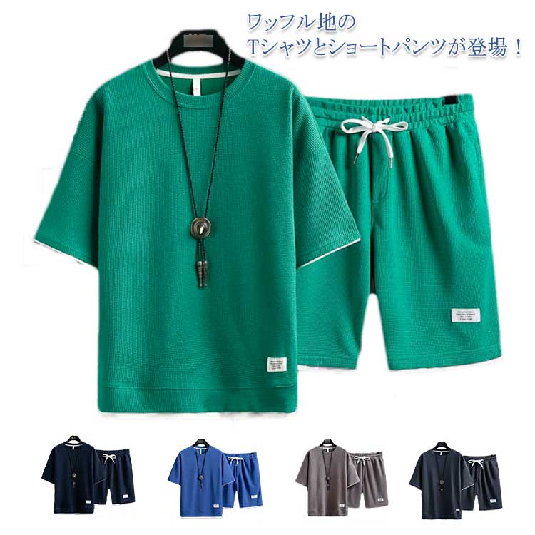 ショートパンツ 半袖Tシャツ ジャージ セットアップ カジュアル ワッフル 大きいサイズ ハーフパンツ メンズ