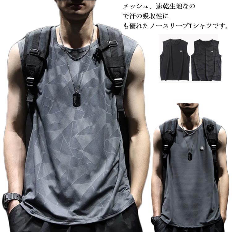 ノースリーブ ノースリーブ シャツ 夏 速乾 メッシュ ストレッチ トレーニング ジム 接触冷感メンズファッション トップス シャツ カットソー