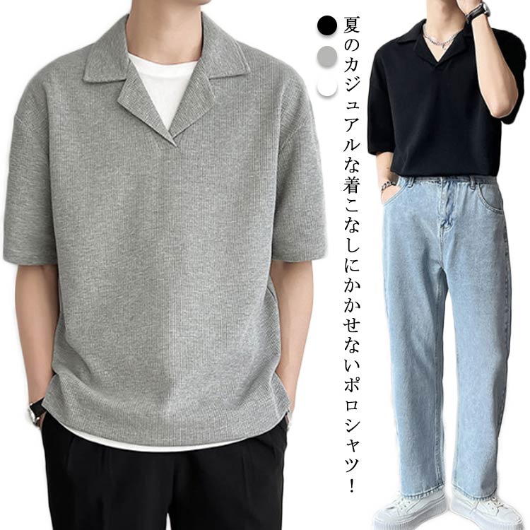 半袖 ポリエステル ポロシャツ メンズ カジュアル tシャツ 襟付き 重ね着スタイル 部屋着 シンプル 快適 夏 大きいサイズ ゆったり 韓国ファッション スポーツ ファッション 3色展開