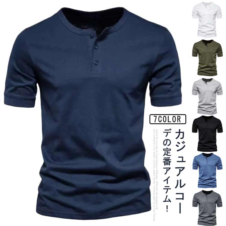 ヘンリーネック Tシャツ メンズ カットソー トップス 半袖 夏服 夏物メンズファッション トップス Tシャツ カットソー