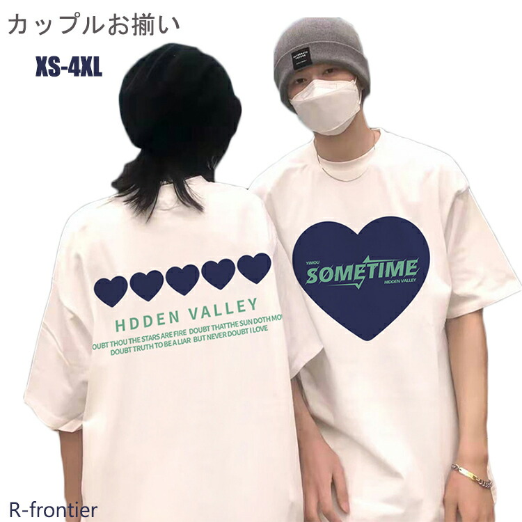カップル ペアルック tシャツ カップル ペアルック黒 白 かっこいい ハート heart 春夏 韓国 半袖 ペア tシャツ お揃い ペアルック カップル ダサい サイズ XS S M L XL 2X