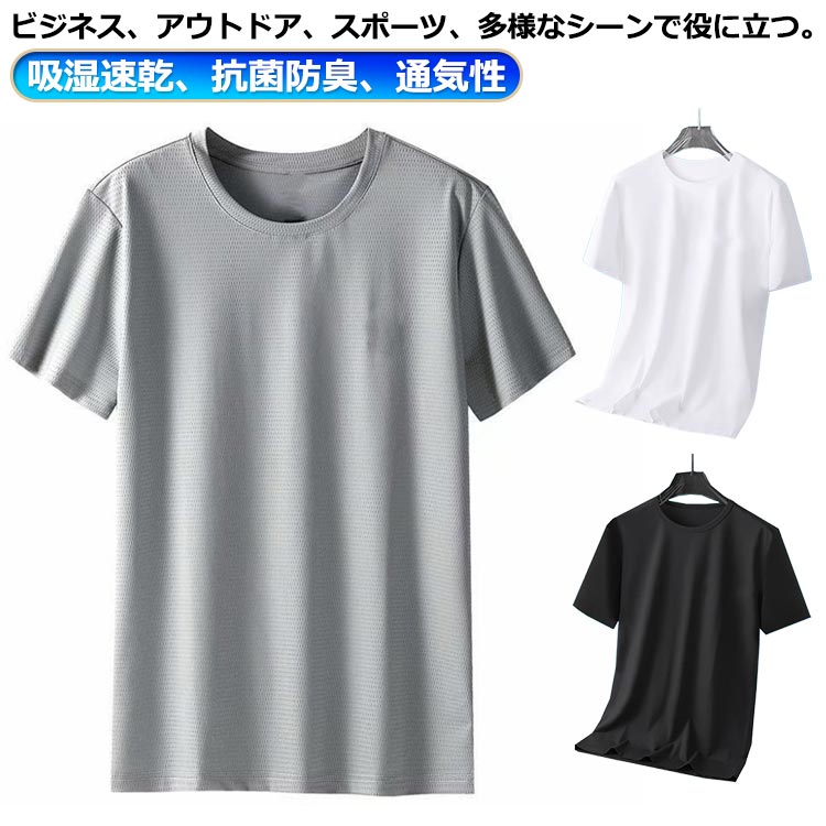 2枚セット トップス クルーネック 吸汗速乾 カット メンズ 半袖 シャツ 接触冷感 夏用 涼しい スポーツ 作業服 作業着 ランニング