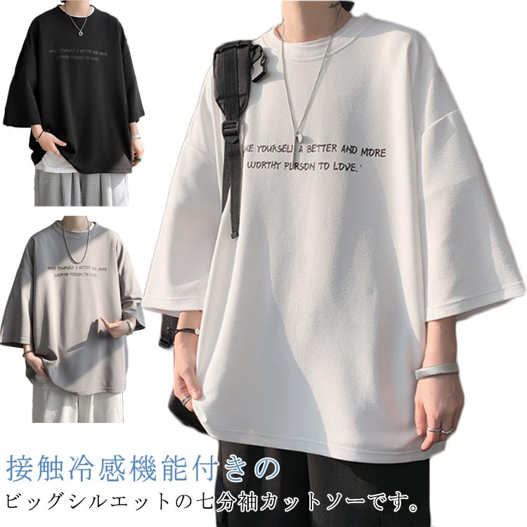 冷感tシャツ 涼感 涼しい 5分袖 ビッグtシャツ 韓国 ビッグシルエットTシャツ メンズ 半袖 大きいサイズ オーバーサイズ ファッション M~5XL