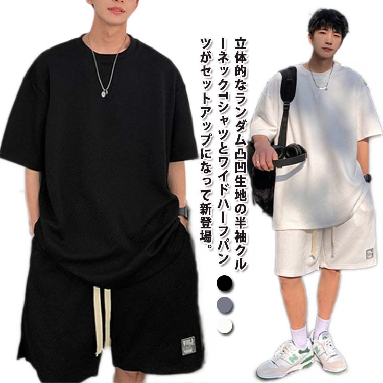 セットアップ ワッフル メンズ tシャツ カジュアル 半袖 ショートパンツ イージー 大きいサイズ セットアップ 夏