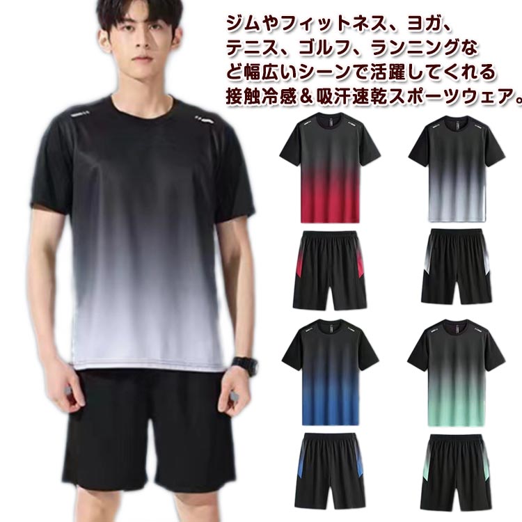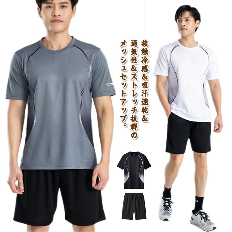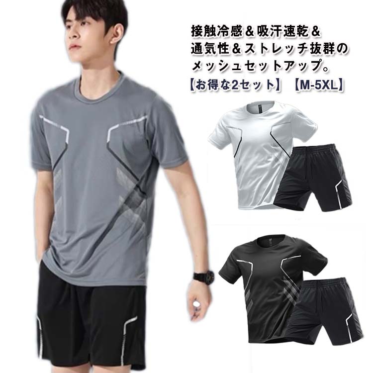 半袖 tシャツ スポーツ ジャージ 上下 2点セット 吸汗速乾 ストレッチ 接触冷感 メッシュ セットアップ