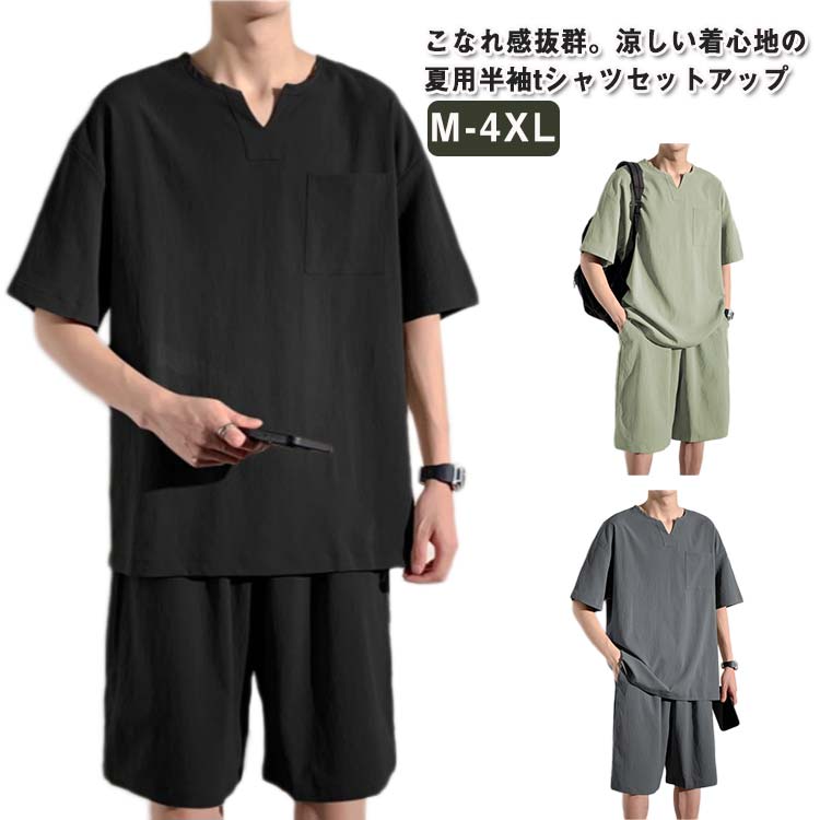 セットアップ カジュアル 上下セット 接触冷感 夏 メンズ 大きいサイズ ゆったり ルーズ 半袖メンズファッション トップス Tシャツ カットソー