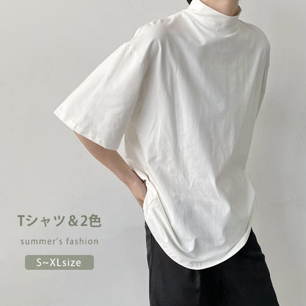 シャツ カットソー ゆったり ハイネック 半袖 無地 五分袖 ハーフスリーブ ティーシャツ ドロップショルダー 韓国 ファッション ジェンダーレス モード系 ゴスロリ 系 メンズ ショートスリーブ